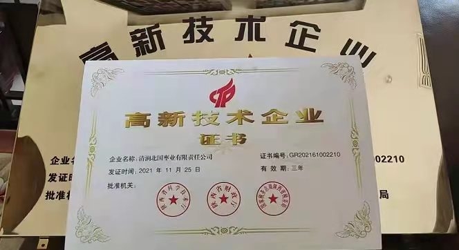 喜訊!北國(guó)棗業(yè)公司榮獲“高新技術(shù)企業(yè)”稱號(hào)